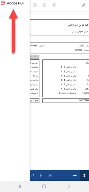 بعد از کليک بر روي دکمه ok براي مشاهده فايل pdf فيش حقوقي ميتوانيد در فايل منيجر گوشي خود طبق تصوير زير اقدام کنيد