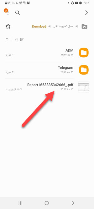 بعد از کليک بر روي دکمه ok براي مشاهده فايل pdf فيش حقوقي ميتوانيد در فايل منيجر گوشي خود طبق تصوير زير اقدام کنيد